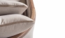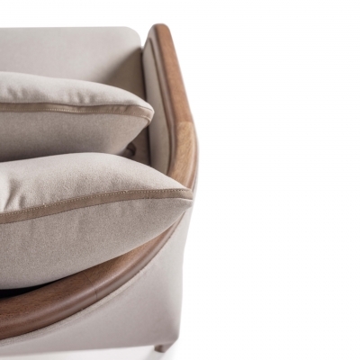 The circular structure adds visual harmony and an organic touch, reinforcing its sculptural character. Upholstered in high-quality fabric and supported by a solid wood base, Soho combines texture, stability, and durability with refined contrast.