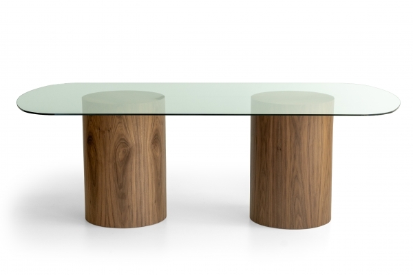 Anello Duo amplía el gesto del encuentro al duplicar sus bases circulares y revelar un nuevo plano de relación. Sus bases redondas sostienen un tablero rectangular de vidrio, que no oculta la estructura, sino que la expone, permitiendo que la forma, la materia y el vacío coexistan en equilibrio. El vidrio crea transparencia para el tiempo: nada se superpone, todo se conecta.