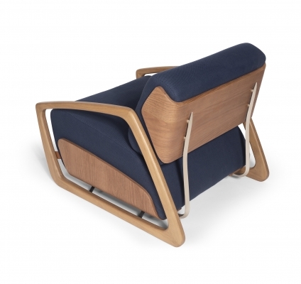 Possui um interessante mix de materiais como madeira, alumínio fundido, tapeçaria, multilaminado, couro e latão. Os braços foram desenhados para flutuarem em torno ao assento, e a peça detem uma construção com muitas novas técnicas e tecnologias.